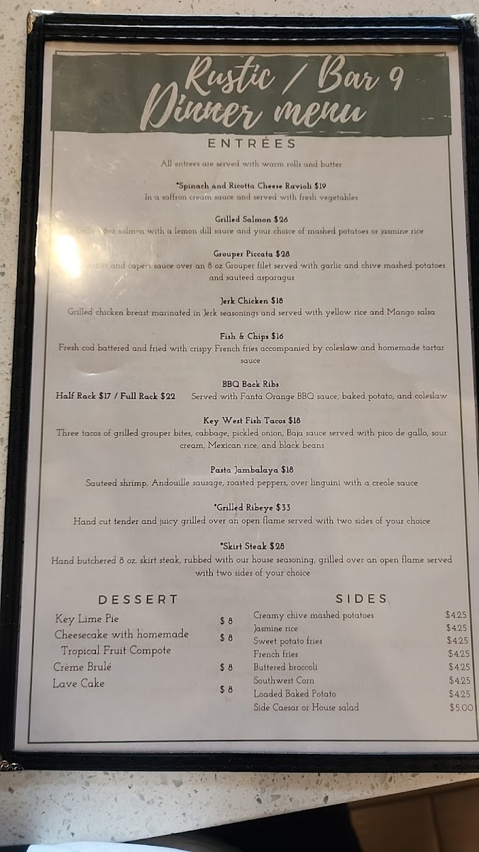 Welcome to Rustic Restaurant & Bar 9, nestled within the Melbourne Hilton at 200 Rialto Pl, Melbourne, FL. This hidden gem is a culinary delight for both hotel guests and locals alike. The menu embraces a comforting mix of flavors, showcasing dishes that highlight fresh, quality ingredients.